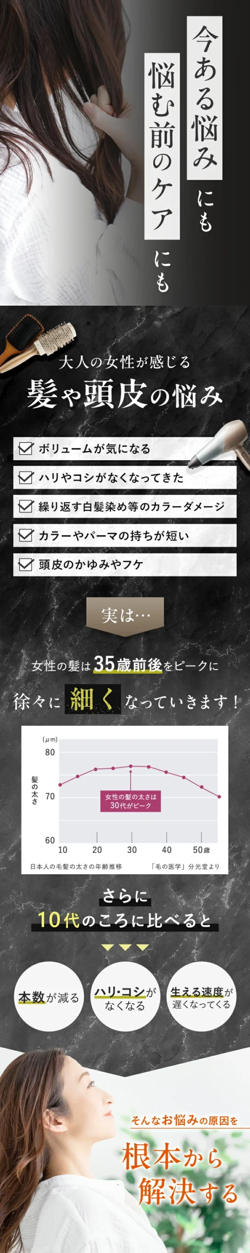 年齢やダメージによるハリ・コシ不足にアプローチ。